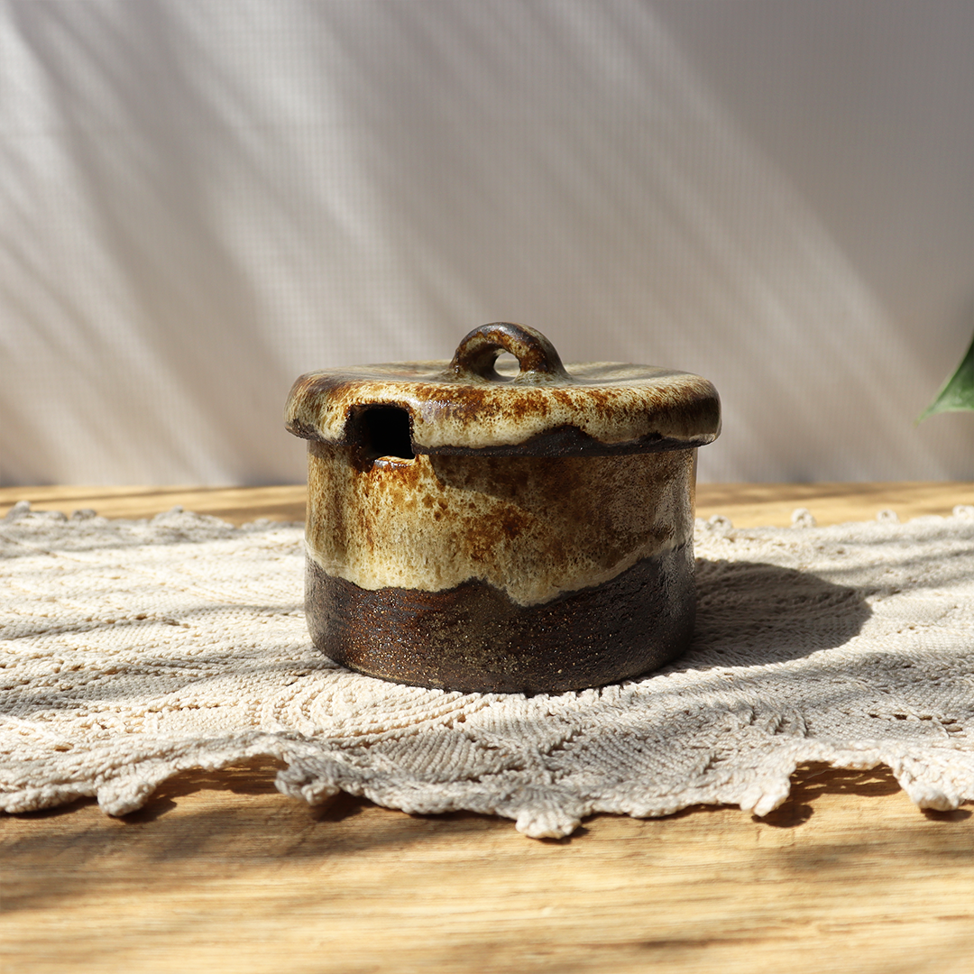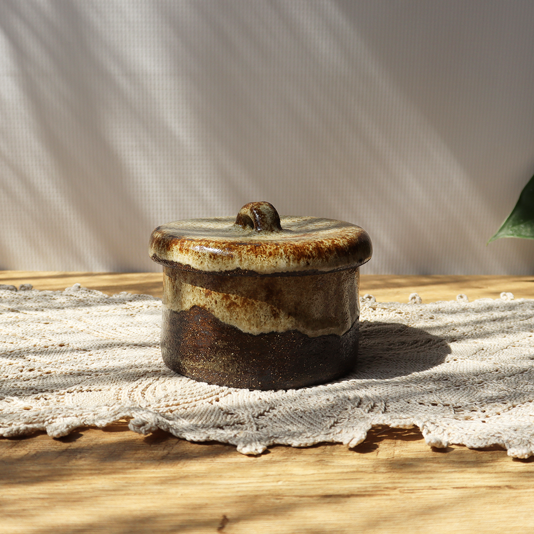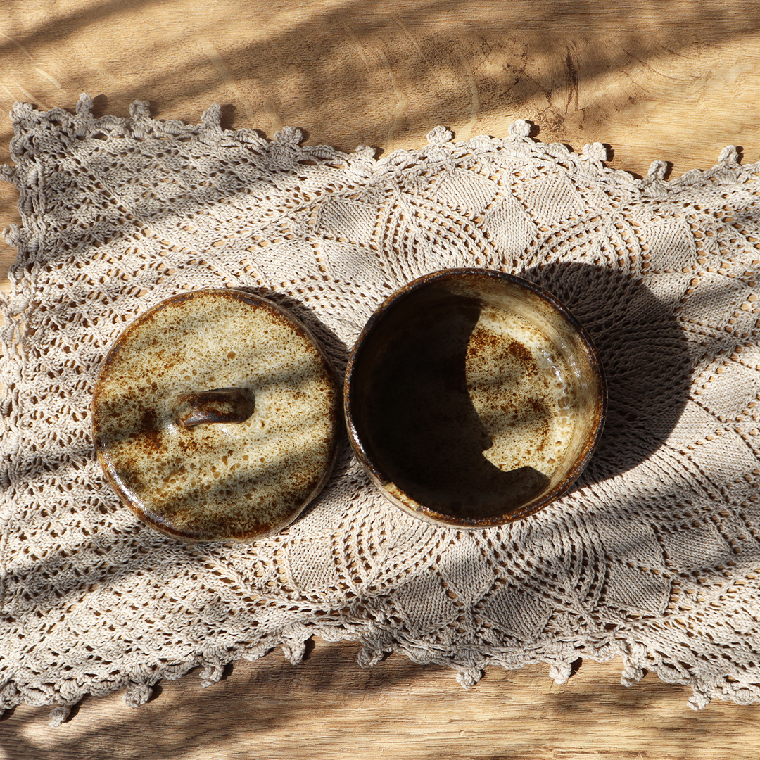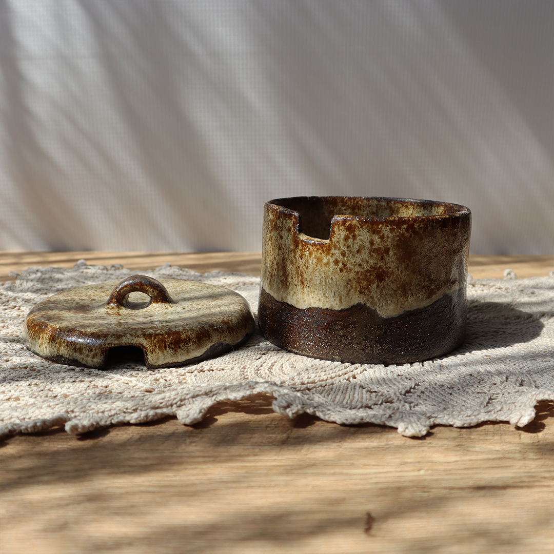 Stworzona dla małych przyjemności ceramiczna cukiernica 200ml z kolekcji Barwy Ziemi. Ręcznie wykonana z ciemnej brązowej gliny, pokryta w środku, na krawędzi i na wierzchu przykrywki spływającym beżowym szkliwem z ciemniejszymi plamkami. Wygodna i drobna, stanowi nie tylko praktyczne naczynie do serwowania cukru ale jednocześnie zachwyca niepowtarzalnym urokiem.
