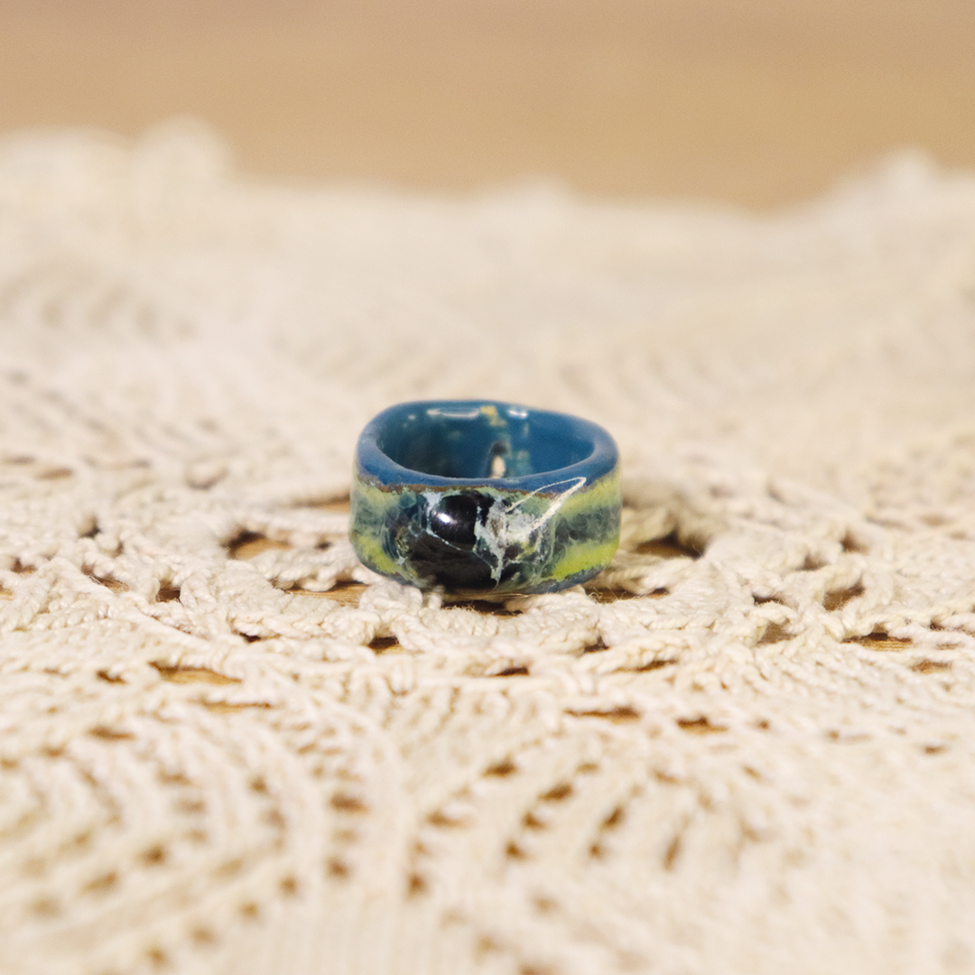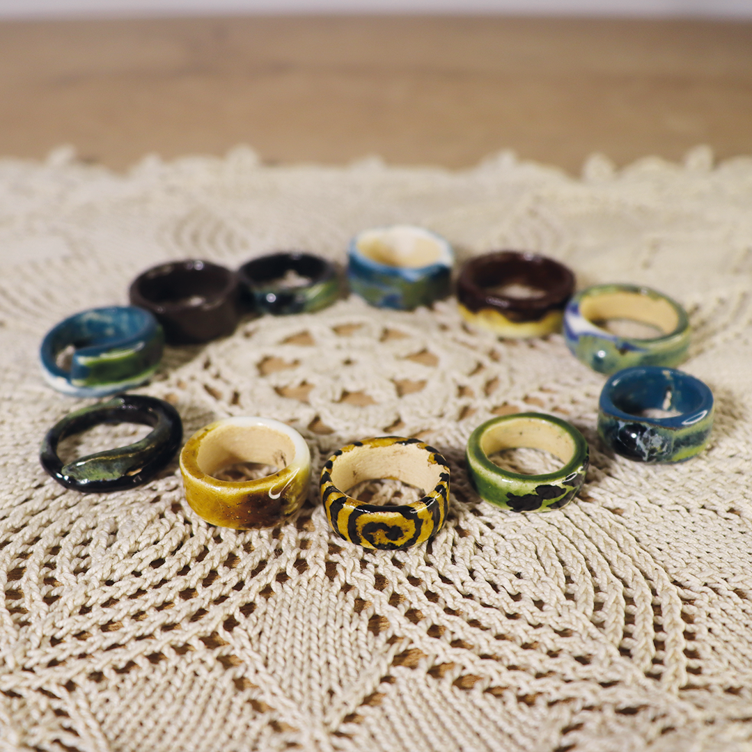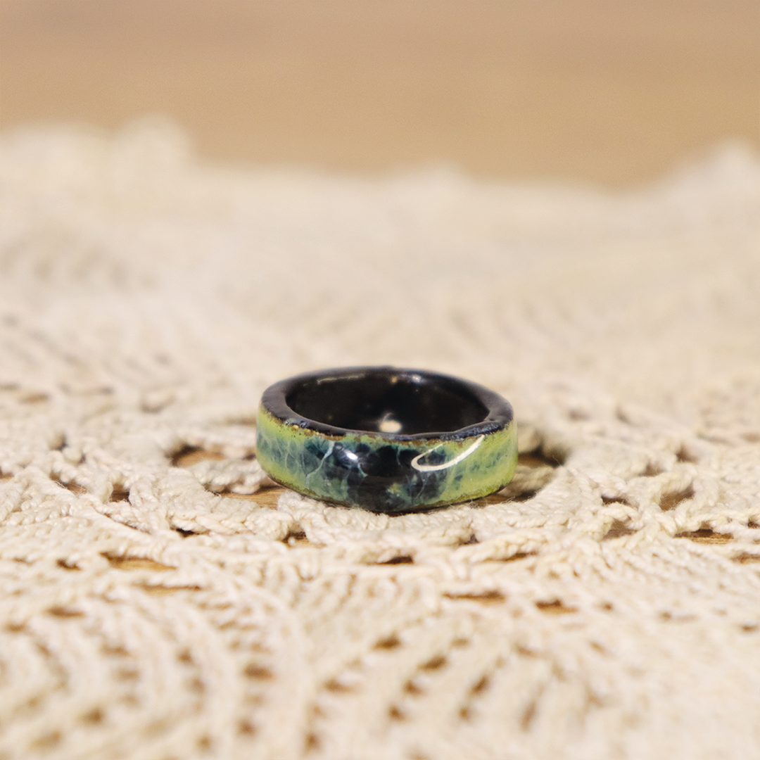 Ręcznie wykonany ceramiczny pierścionek – obrączka to wykorzystanie piękna ceramiki w biżuterii. Obrączki wykonane z ceramiki i pokryte wielobarwnymi lub jednolitymi szkliwami czy ozdobione wzorami, podkreślają unikalny charakter ręcznie wykonanej biżuterii. Każda obrączka jest jest inna i posiada swój indywidualny urok.