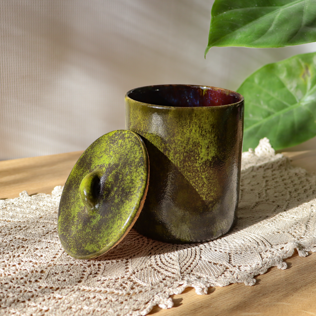 Przedstawiamy ręcznie wykonany ceramiczny pojemnik z przykrywką o pojemności 500 lub 750ml z Kolekcji naczyń ceramicznych „Leśny mech”. Ten elegancki pojemnik łączy w sobie estetykę i funkcjonalność, tworząc idealny dodatek do każdej kuchni lub jadalni. Inspirowany pięknem leśnego krajobrazu, pojemnik wyróżnia się wyjątkowym wzornictwem,  nawiązującym do naturalnych form i tekstur.