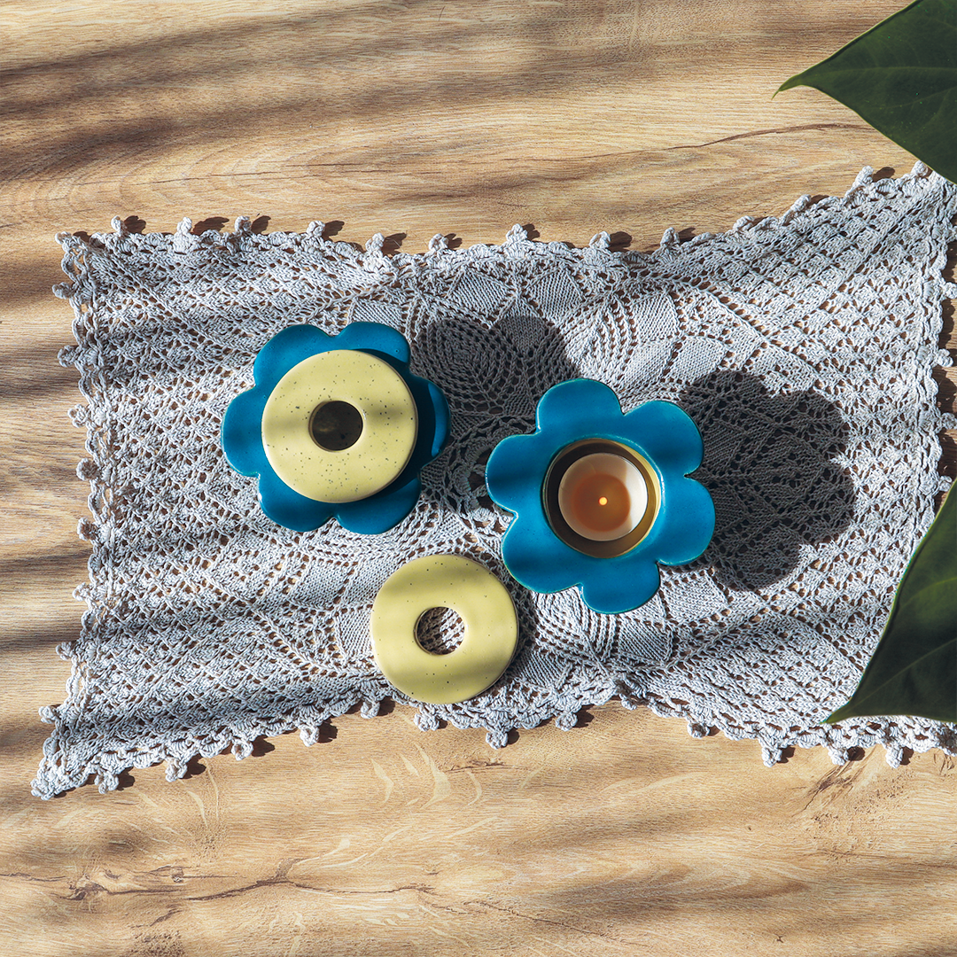 Ręcznie wykonany ceramiczny świecznik -Kwiat na t-lighty w kształcie kwiatka to unikalny dodatek, który doda uroku każdemu wnętrzu. Jego piękny design sprawia, że nie tylko pełni funkcję praktyczną, ale również stanowi dekorację. Podobnie do innych produktów w naszej ofercie, świecznik ten wykonaliśmy ręcznie, co nadaje mu unikalnego charakteru i artystycznego wyrazu.