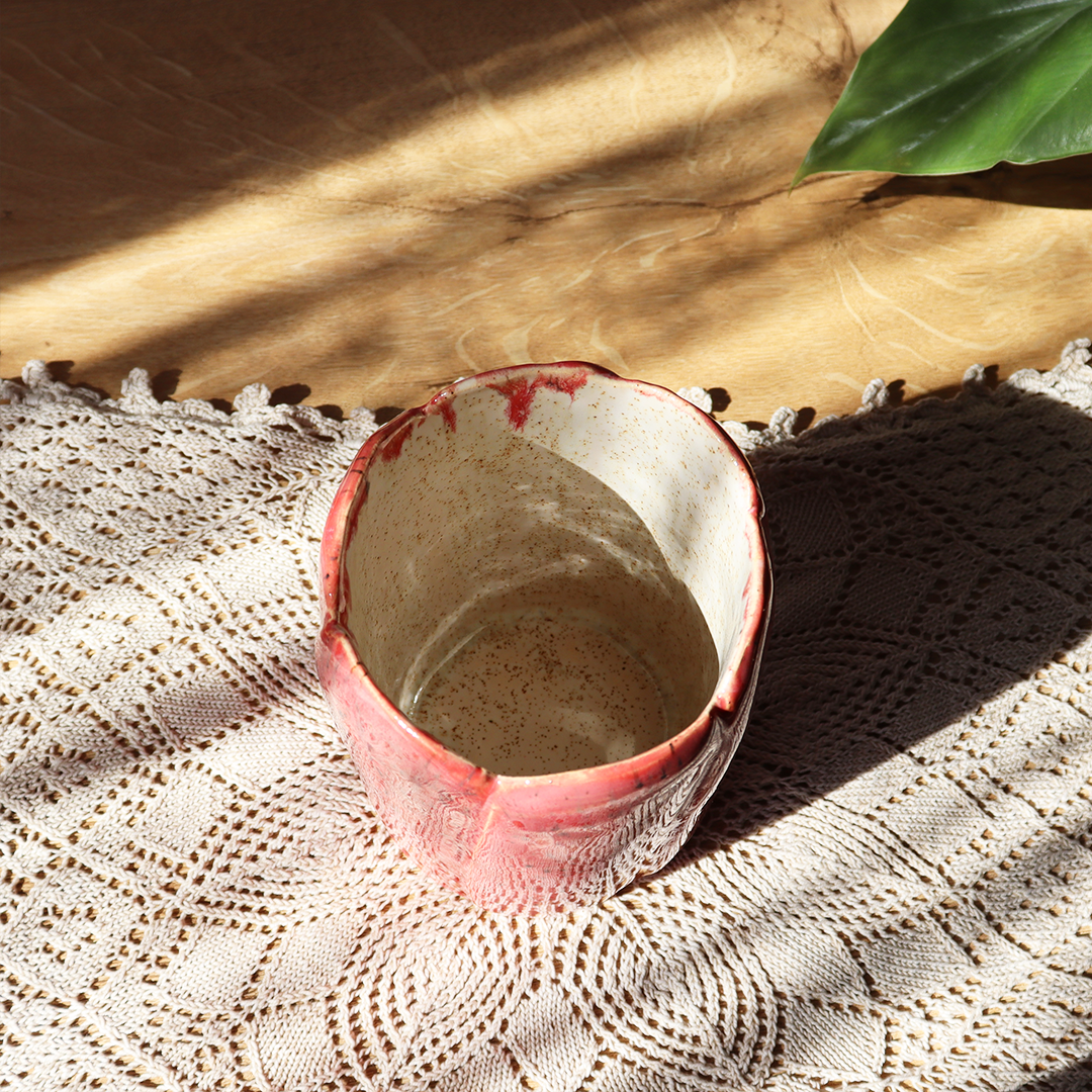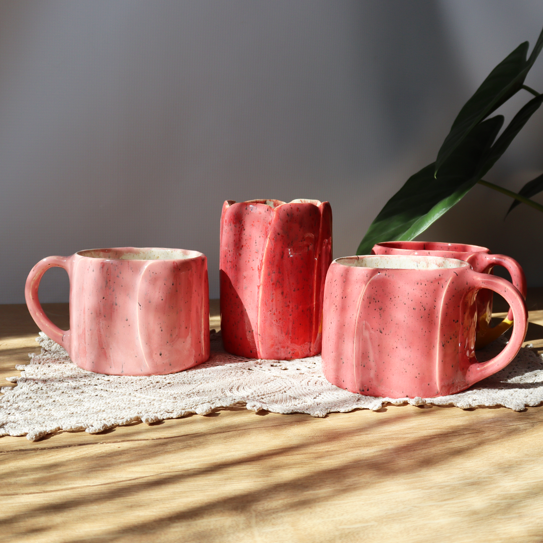 Ręcznie wykonany ceramiczny wazon – Tulipan o pojemności 500 ml. Wykonany na kształt tulipana to piękny dodatek, który doskonale sprawdzi się w eksponowaniu kwiatów. Został pokryty uroczym różowym szkliwem z drobnymi brązowymi kropkami oraz w środku jasnym beżowym szkliwem. Dzięki pojemności 500 ml oraz średnicy 9 cm i wysokości 12,5 cm, ten wazonik pięknie ozdobi wnętrze. Pojemnik idealnie wpisuje się w styl rustykalny, boho czy romantyczny.