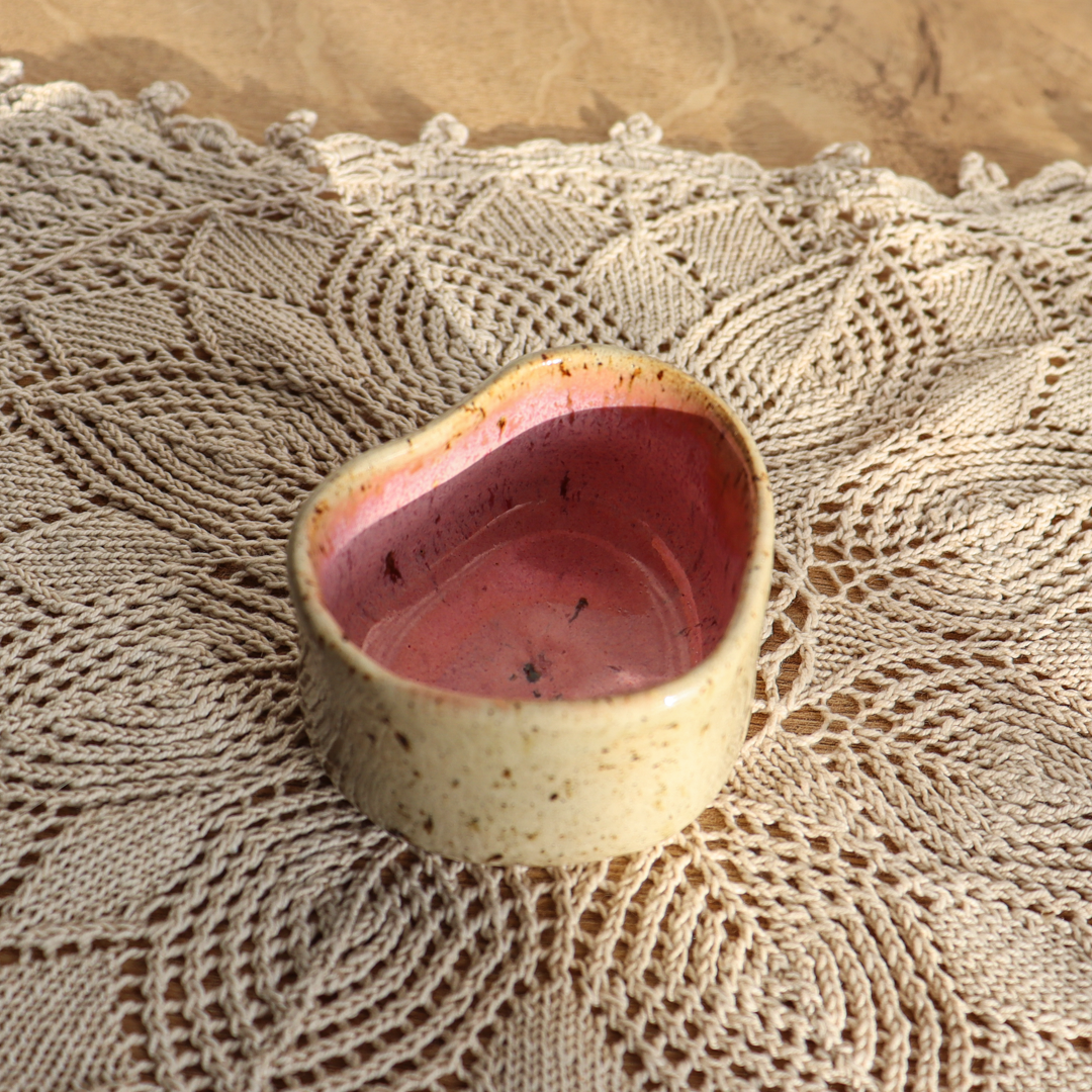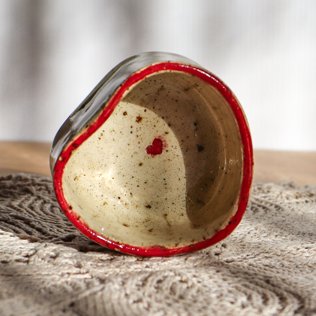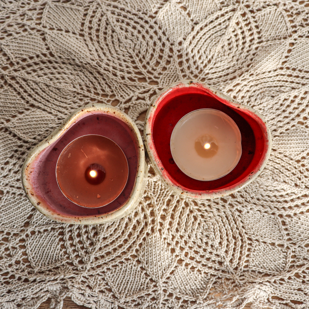 Ręcznie wykonany z beżowej gliny charakteryzującej się drobnymi piegami, świecznik ceramiczny – Serce, to wyjątkowy element dekoracyjny, który doskonale podkreśli urok wnętrza. Jest uformowany na kształt serca a jego wnętrze jest pokryte różowym, czerwonym lub bezbarwnym (z czerwoną obwódką na brzegu) szkliwem, podkreślającymi jego kształt. Został stworzony z myślą o standardowych wkładach t-light, ale jego wymiary o średnicy 6 cm wewnętrznej oraz 4 cm wysokości, pozwalają także na odłożenie zaparzacza do herbaty, dołączonego w zestawie.
