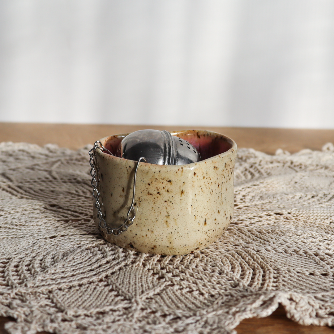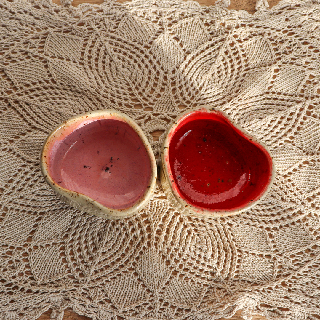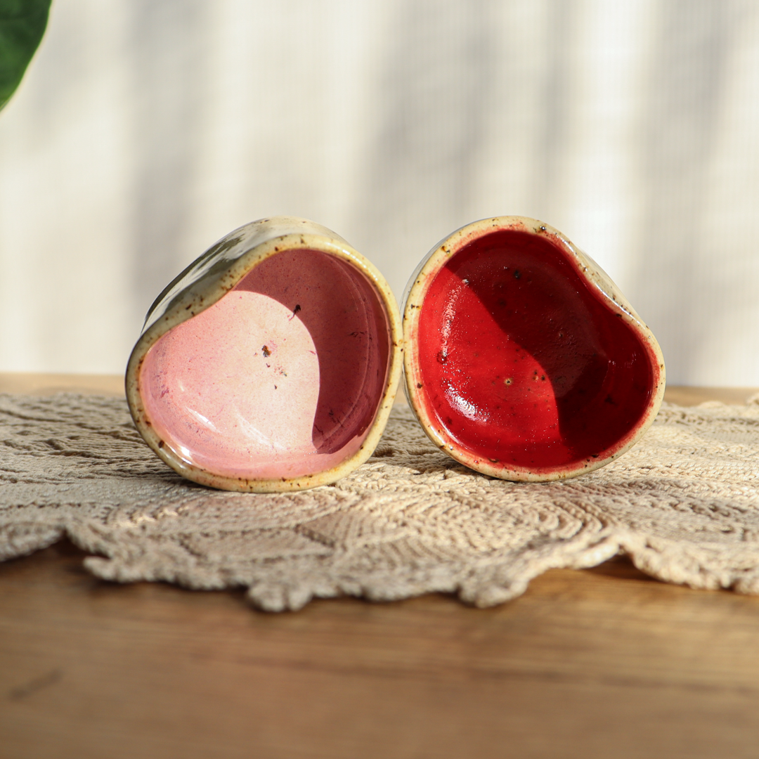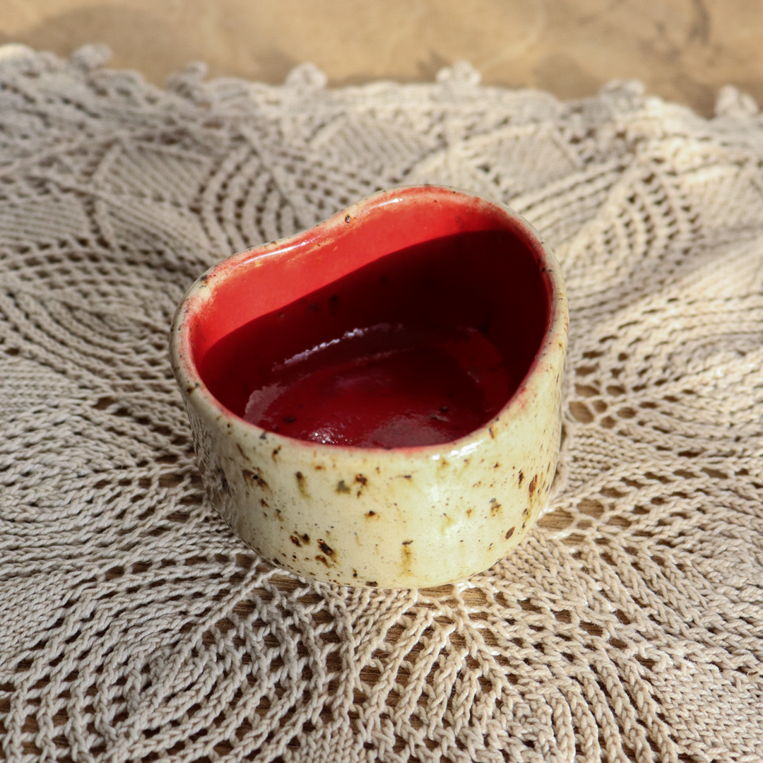 Ręcznie wykonany z beżowej gliny charakteryzującej się drobnymi piegami, świecznik ceramiczny – Serce, to wyjątkowy element dekoracyjny, który doskonale podkreśli urok wnętrza. Jest uformowany na kształt serca a jego wnętrze jest pokryte różowym, czerwonym lub bezbarwnym (z czerwoną obwódką na brzegu) szkliwem, podkreślającymi jego kształt. Został stworzony z myślą o standardowych wkładach t-light, ale jego wymiary o średnicy 6 cm wewnętrznej oraz 4 cm wysokości, pozwalają także na odłożenie zaparzacza do herbaty, dołączonego w zestawie.